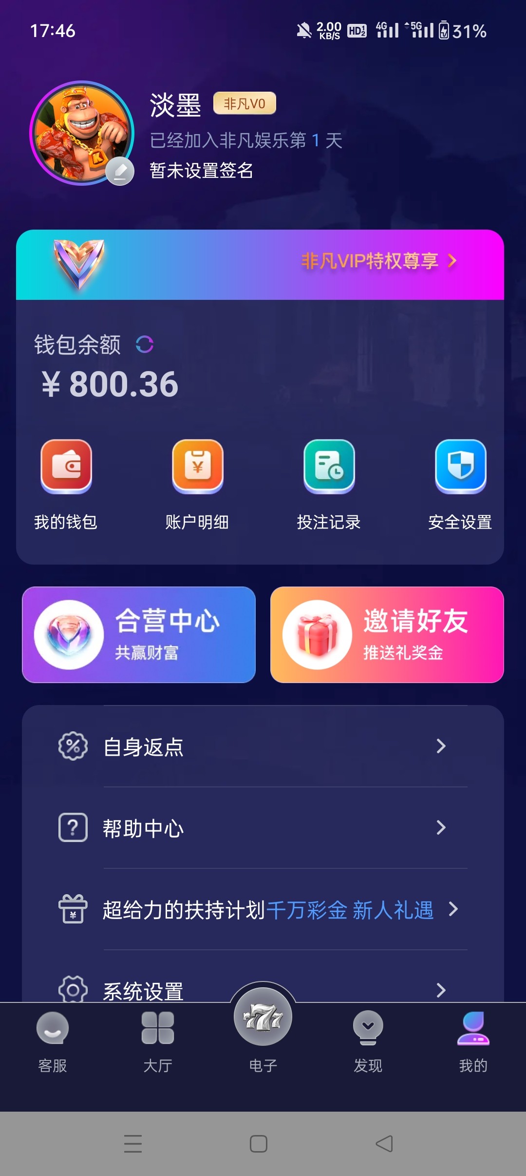 充值后未下注前活动里自助申请